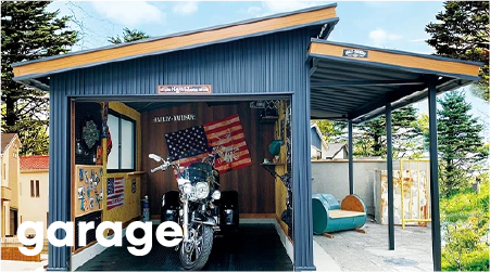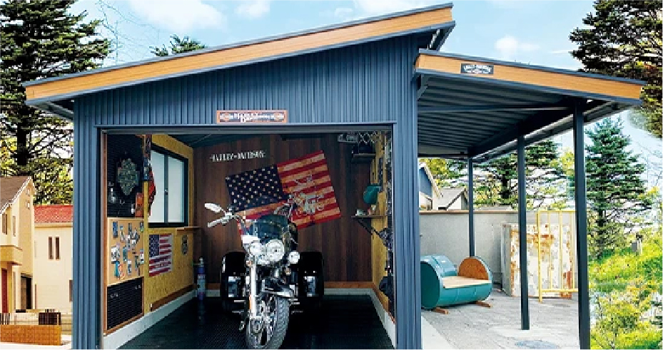 車やバイクのガレージはもちろんのこと、自分の好きを詰めんこんだガレージ、倉庫をとしてご活用いただけます。