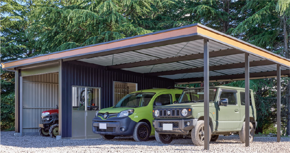 ガレージ、小規模倉庫、カーポート、店舗、事務所、農業用倉庫、作業場など、