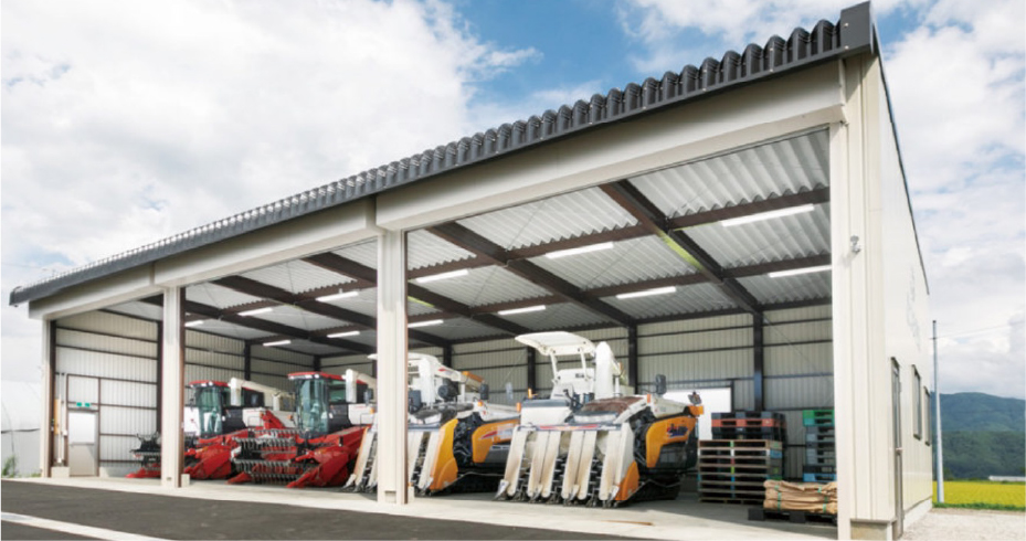 農機具が入る高さのある農業用倉庫は、作業場としても便利です。